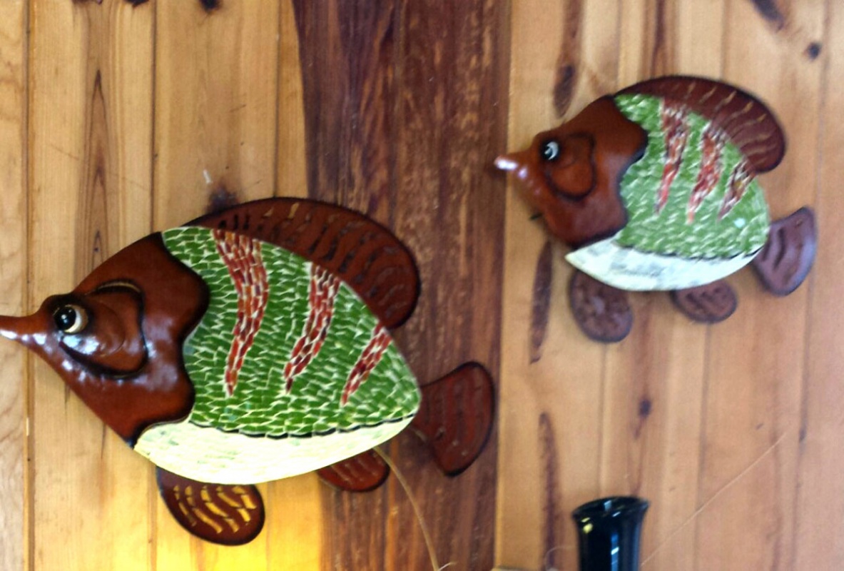 On the far west end toward the convention center is a family working on their metal art. From a nine foot giraffe to a tiny flower, their talent is evident in everything they produce. As you come further down the drive you’ll see shell art, also a family business. They gather their own shells, clean them and create wind chimes, mirrors, napkin holders and unique statues. This is done by 5 generations of family members.